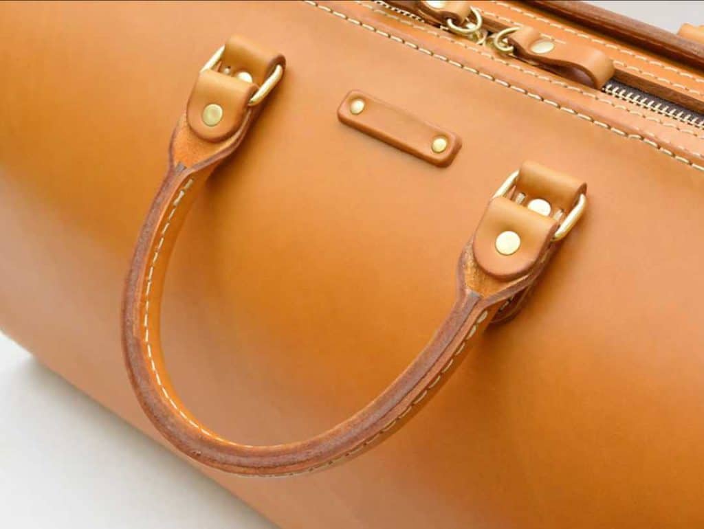 - There is a spot on one side of the bag for a label. Letters will be heat-debossed into the leather label, so we'll need to know your preferred monogram or other details of your label.